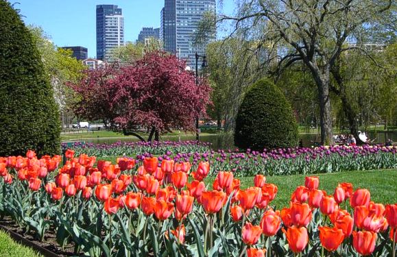 Tulips are in bloom at the Public Gardens in Boston, Massachusetts.