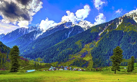 Spring landscape in the upper Aru Valley of Kashmir, northern India.