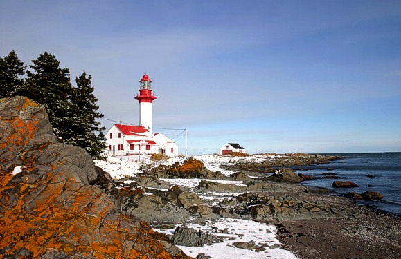 The Point Mitis Lighthouse on the Gaspe Peninsula, Quebec, Canada.
